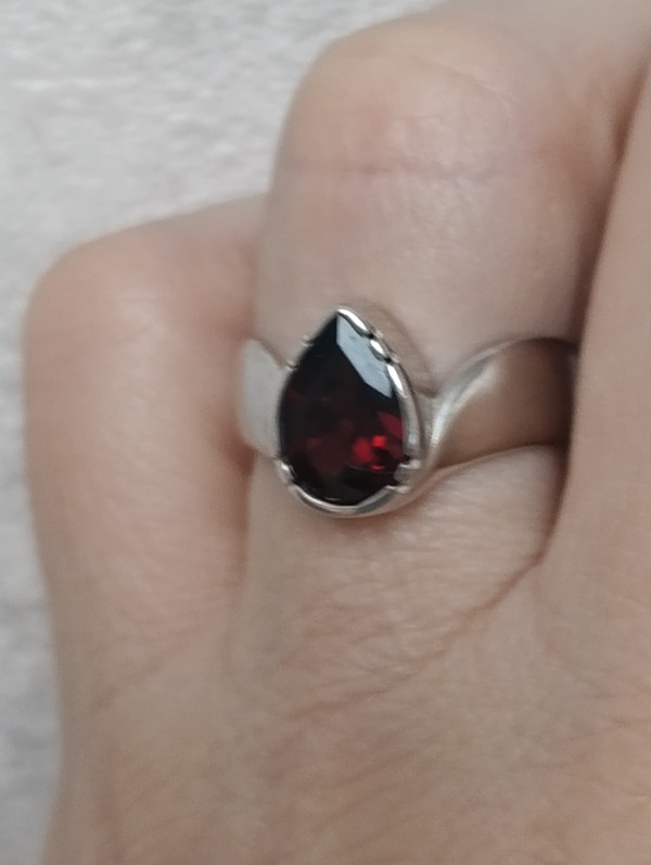 Кольцо очень красивое. Гранат имеет глубокий цвет. Смотрится необычно и дорого.