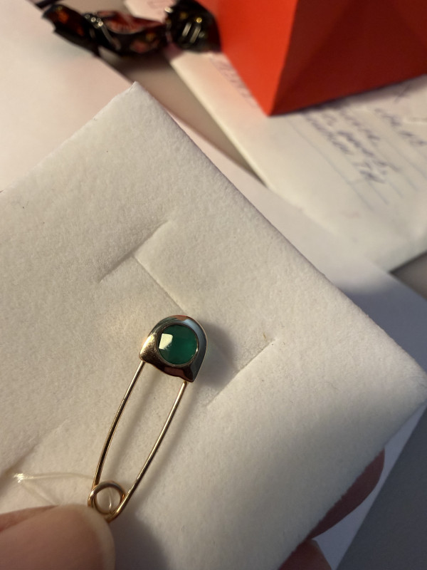 Какая красота ! Обожаю зеленый цвет и Агат в булавочке яркий , сочный , крупный ! А сама булавка милая ! Доставка транспортной компанией - на ура . Все очень хорошо упаковано : в самой коробочке упаковка , коробочка в упаковке . Спасибо большое за прекрасное изделие и заботу о нем !