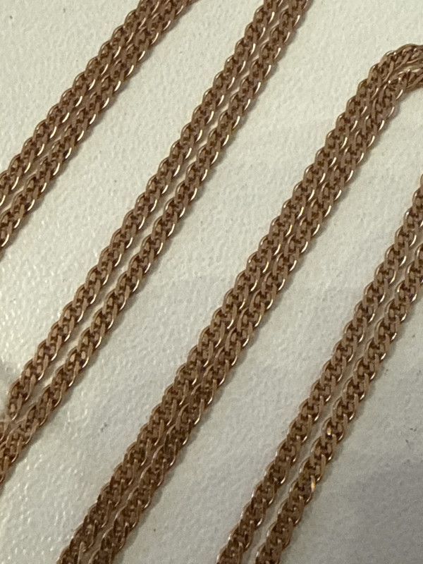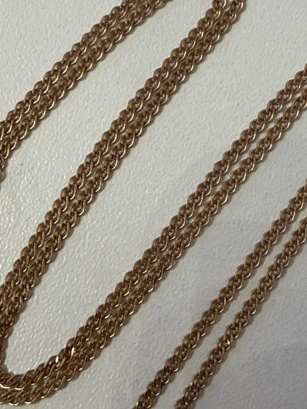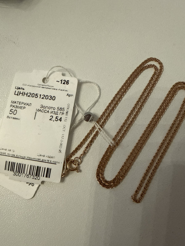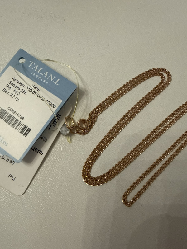 Тонкая, нежная цепочка. 1,5 года назад брала 50 см, довольна. Взяла для кулона 40 см.